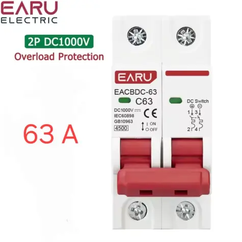 Mini brecker DC 1000V . Protección 63A 2P para solares , hogar o industria.